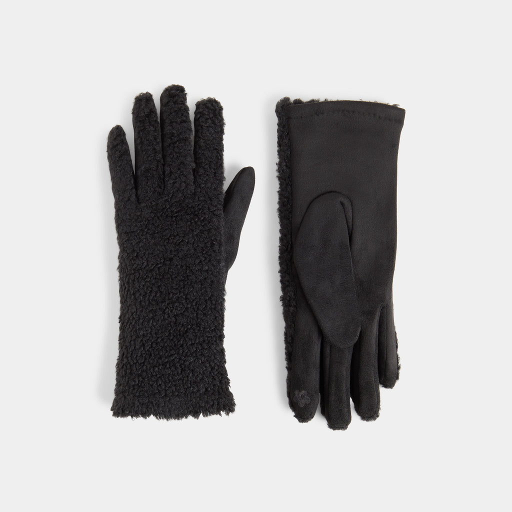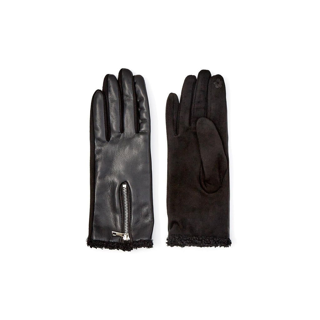 Vegan Leather Faux Fur Cuff Gloves - Black or Taupe