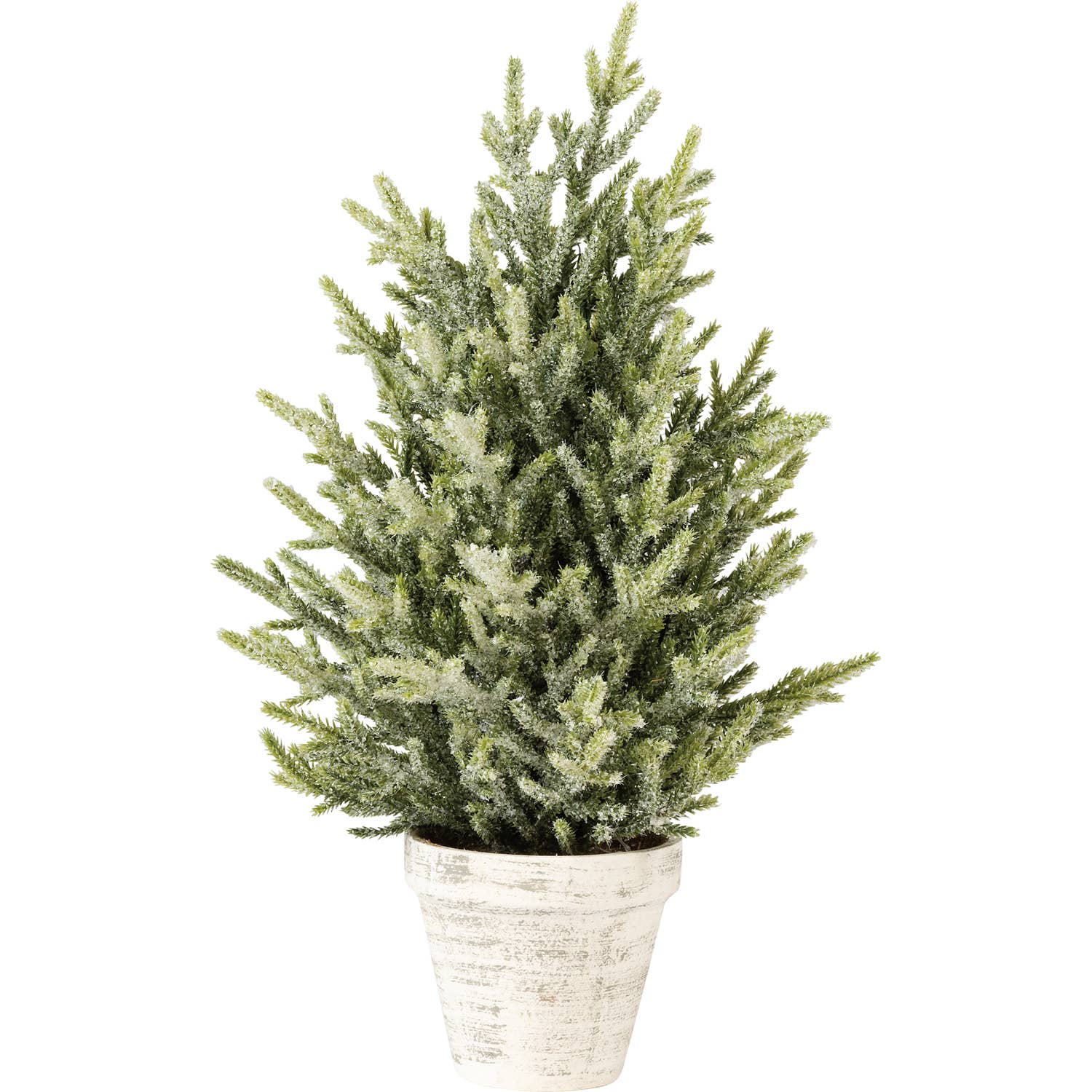 A standing bristle tree featuring glitter accents for an icy effect and a flower pot base.