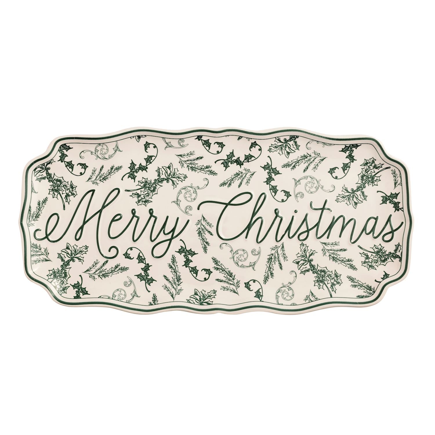 Merry Christmas Green Toile Tray