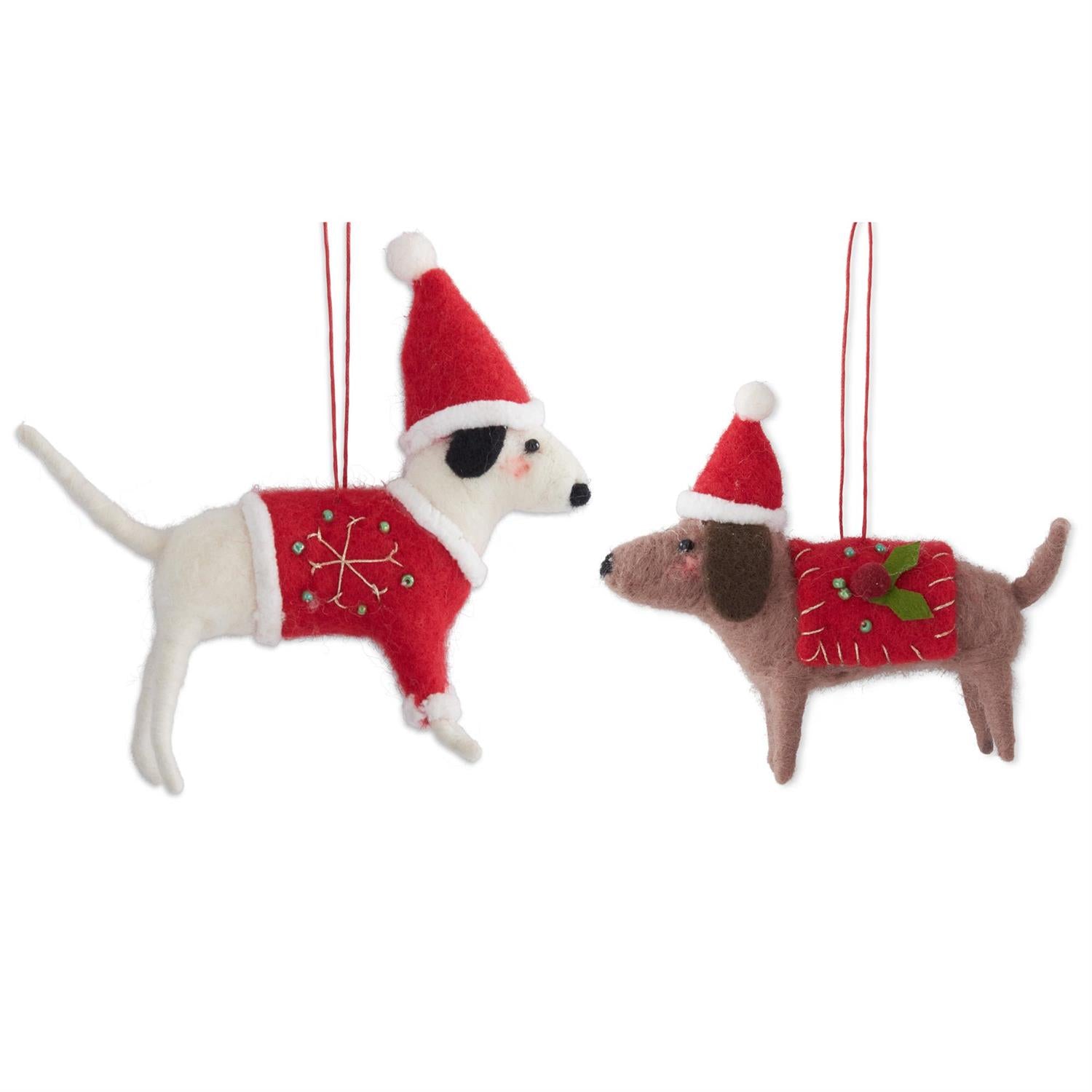 Wool Red Sweater Dog Ornaments - 2 Colors