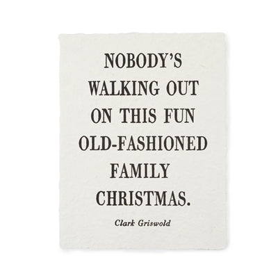 This whimsical "Nobody's Walking Out" (Clark Griswold) artwork is printed on handmade paper with deckled edges.  Each piece of beautiful handmade paper will have slight variations due to the handmade process and is suitable for framing.