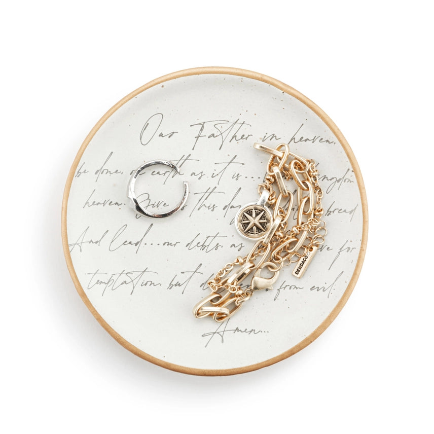 Because the little things take up the biggest places in our hearts - keep your tiny treasures safe with the white and gold Lord's Prayer-inspired trinket dish.