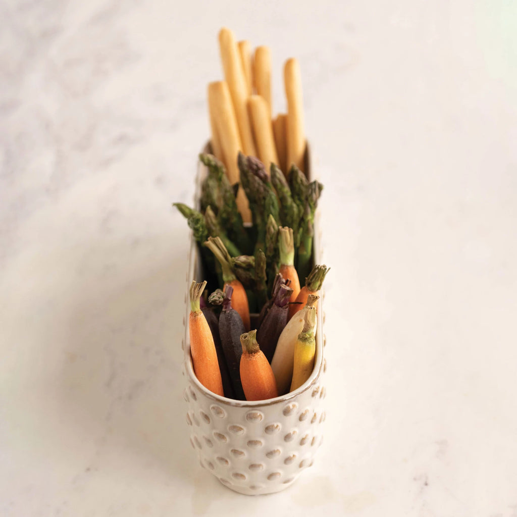 This versatile piece is perfect as a planter, a serveware holder, or appetizer serving piece! Made out of stoneware, with a hobnail design - it's your new go-to piece in your kitchen.