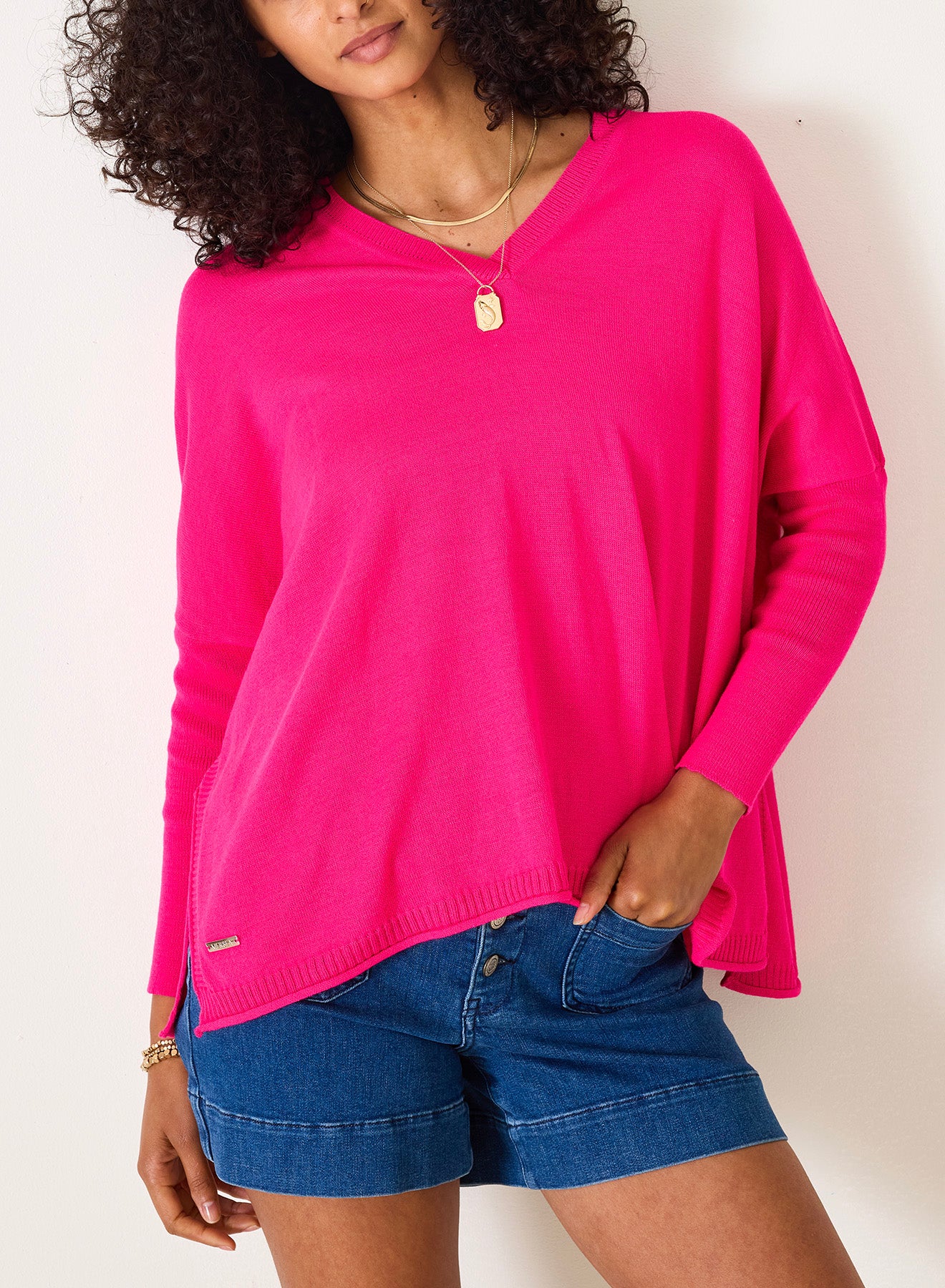Wear it the way you like it, this V-Neck Sweater is undeniably a go-to in any season. Whether you’re on the move, in need of a quick change or looking to dress effortlessly chic, this is the sweater. Layered and worn on its own, this V-neck sweater is enough to be “the outfit“ and understated enough to never “overdo it.” With the signature Catalina split sides and contoured shoulders into a tapered sleeve, you will find that this is truly a year-round closet hero.
