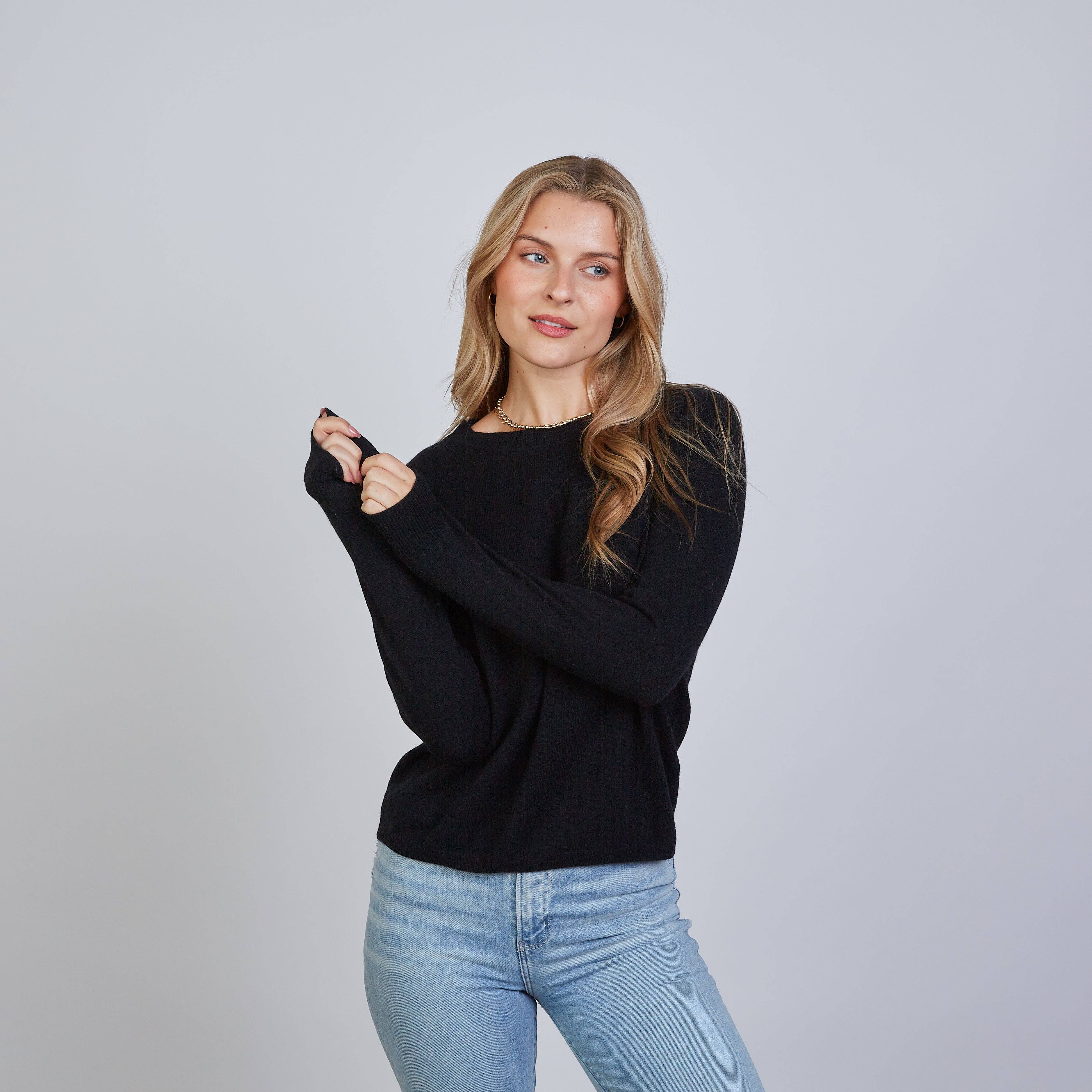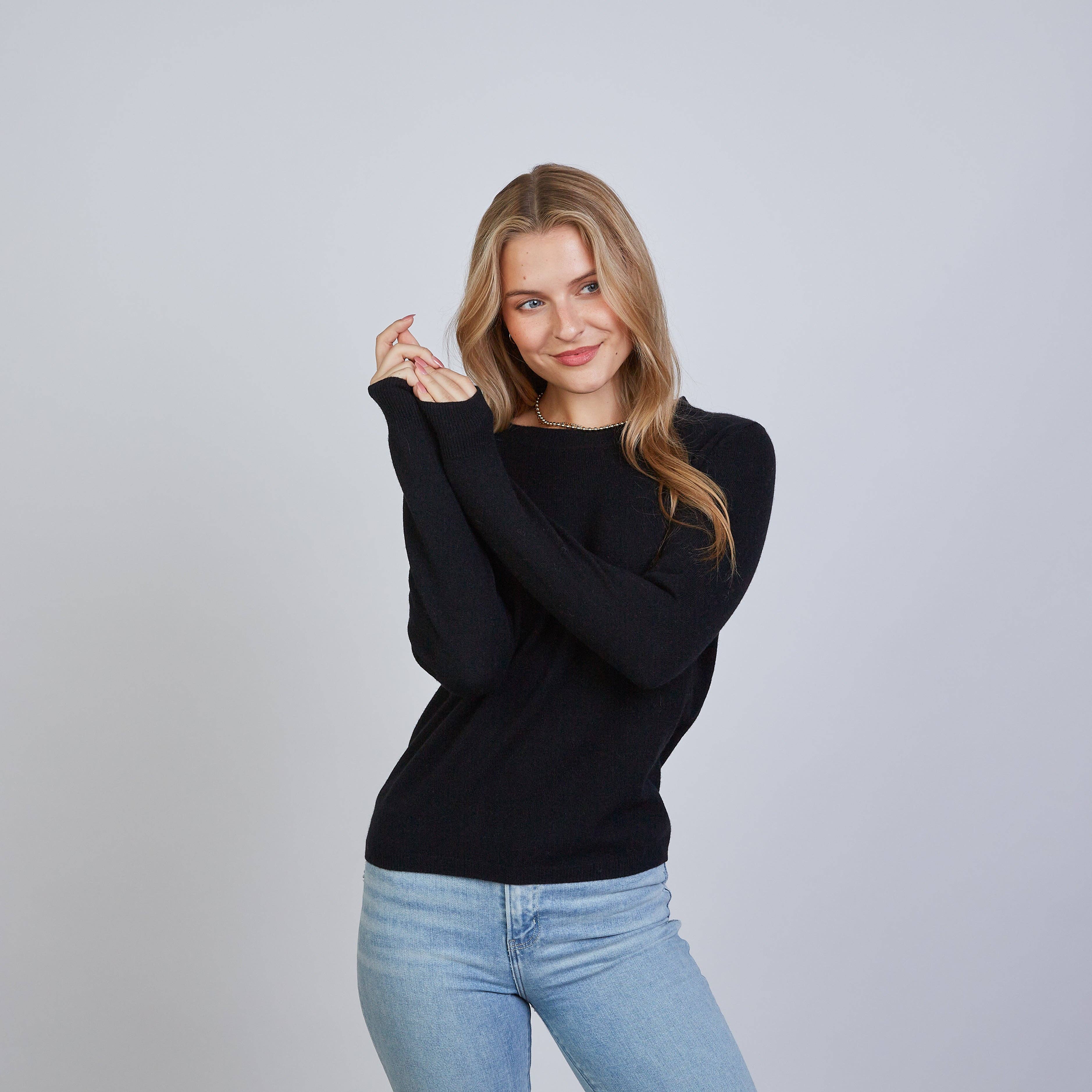 Minimal in front, bold in back. This 100% Mongolian cashmere sweater features a sleek crewneck with an unexpected vertical stripe running down the back. Crafted for effortless elegance, it's soft, lightweight, and versatile enough to pair with denim, trousers, or layer under an erin gray puffer vest. Everyday luxury with a modern edge.