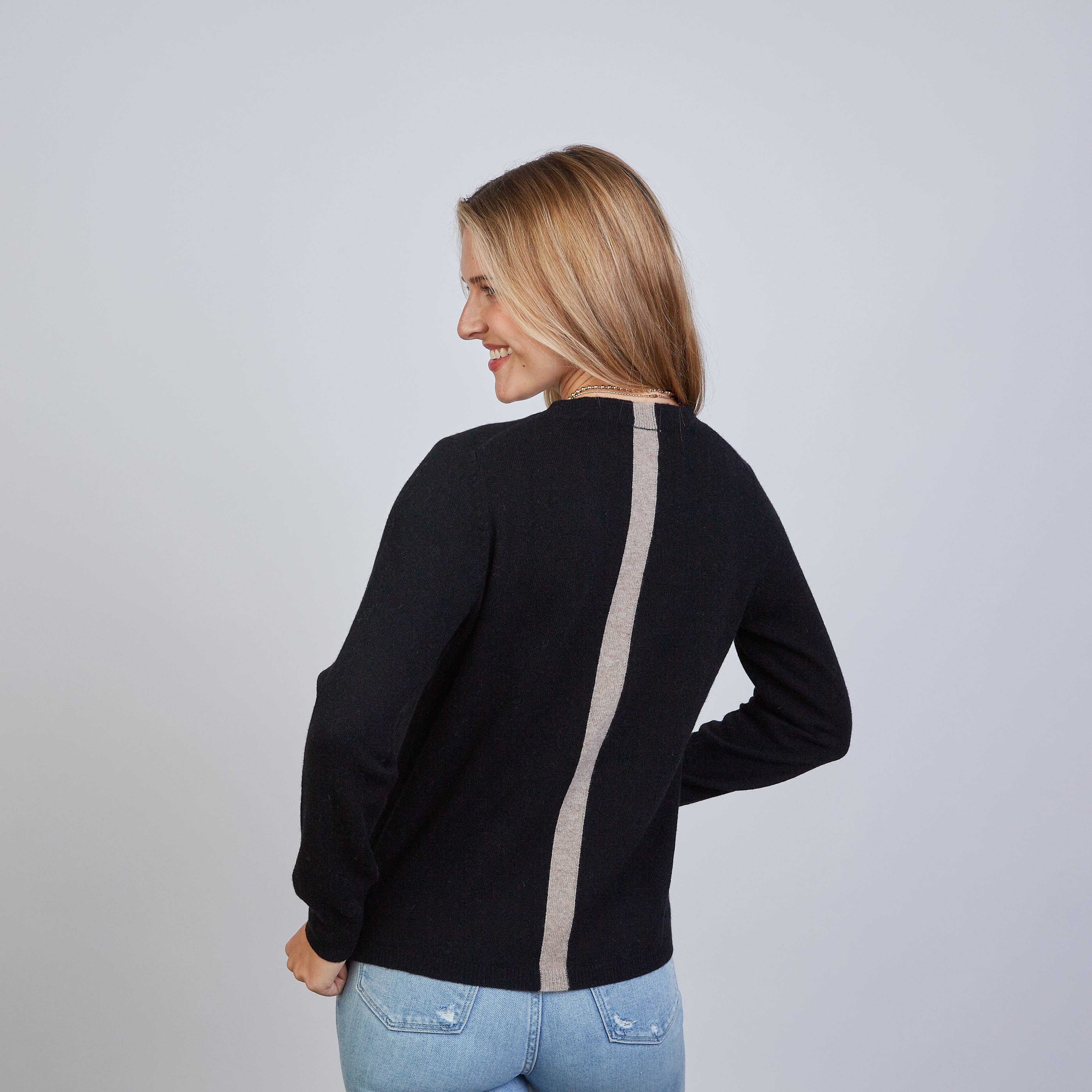Highland Stripe 100% Mongolian Cashmere Sweater in Black with Beige