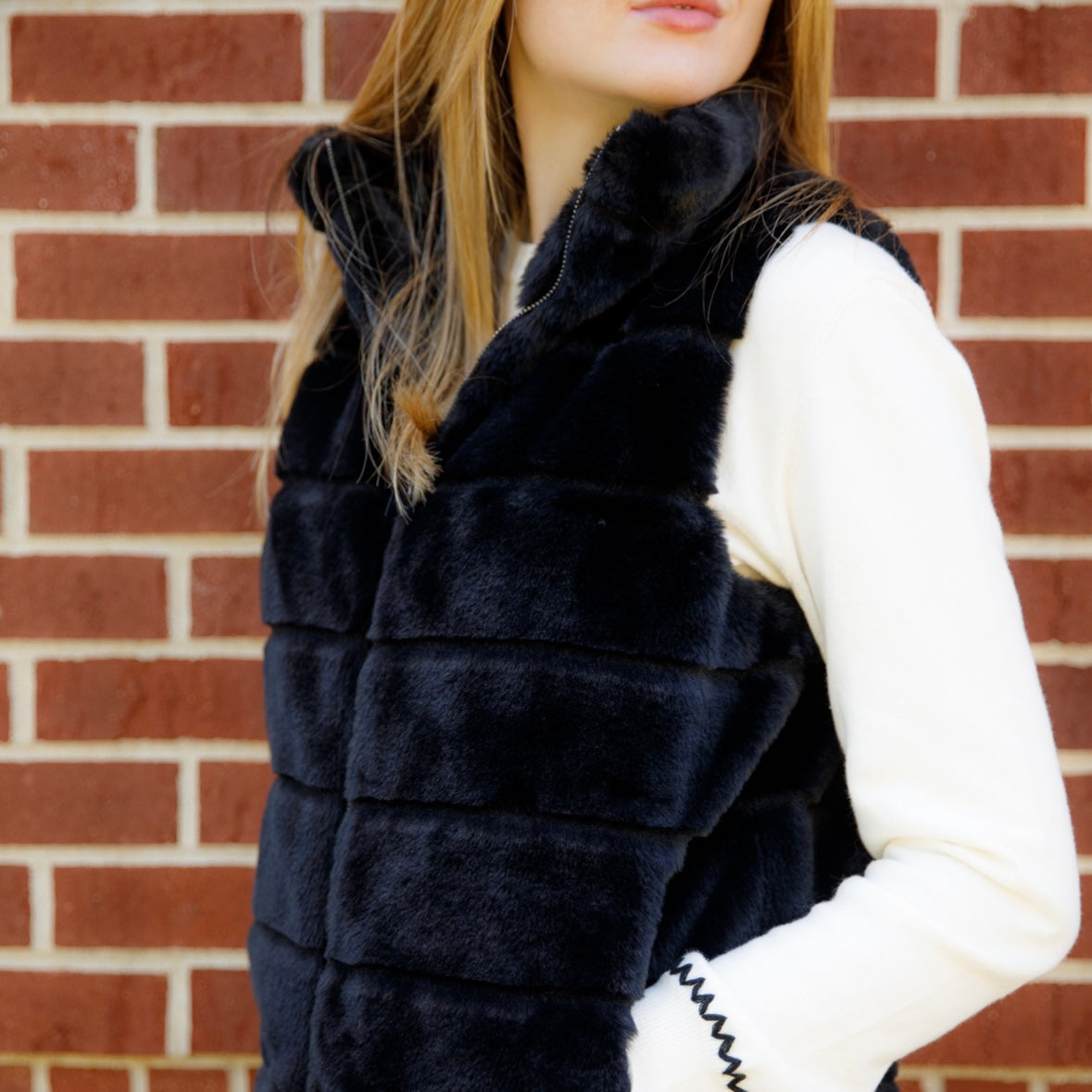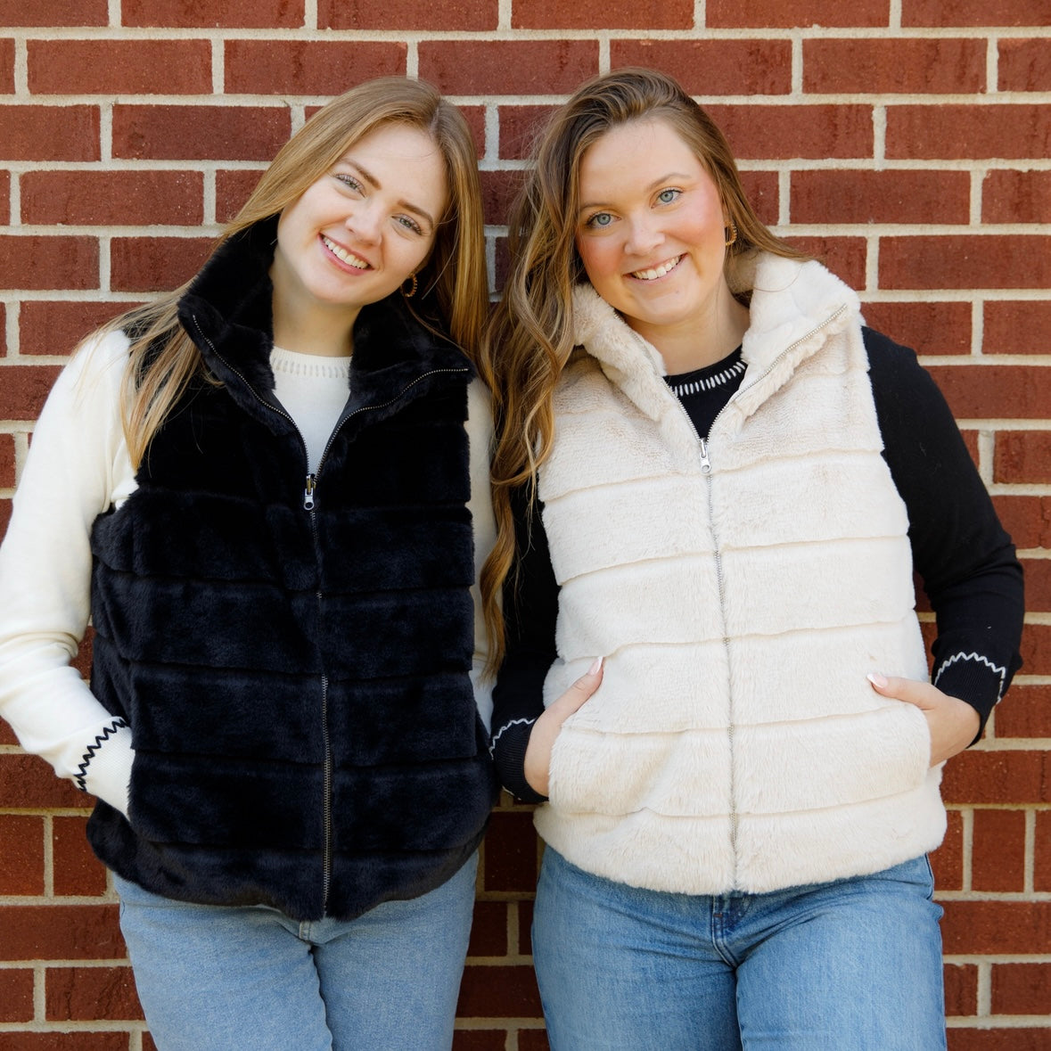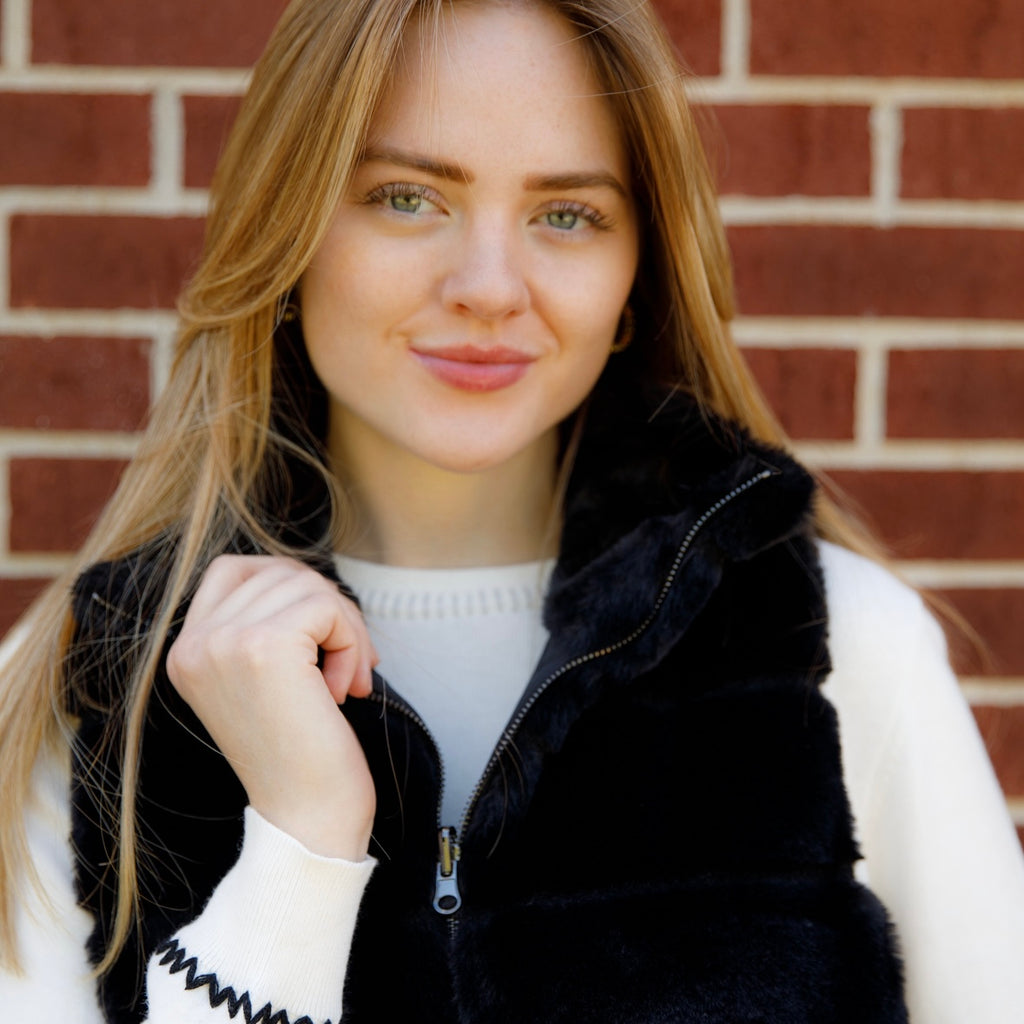 Snuggle up in Nikky Apparels' fully reversible fur vest! Available in both black and beige, this cozy vest features convenient front pockets for all your essentials.