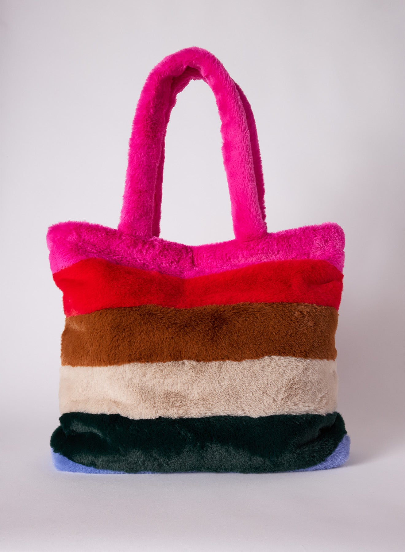 Cozy Cabin Faux Fur Tote by Mer Ses - Multi Stripe
