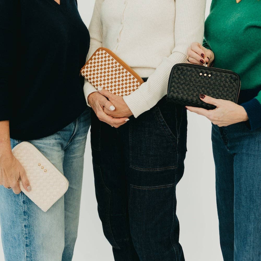 Meet your new go-everywhere essential! The Lenni Large Zip Woven Wallet combines style with serious functionality. Crafted with a beautiful woven finish, this versatile piece features a spacious interior, zipper pockets for secure storage, and dedicated card slots on each side to keep everything organized. Whether you're using it as a wallet or grabbing it as a clutch, the Lenni adapts to your lifestyle.