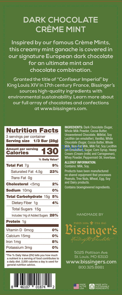 Bissinger's Dark Chocolate Crème Mint Bar - 3 OZ