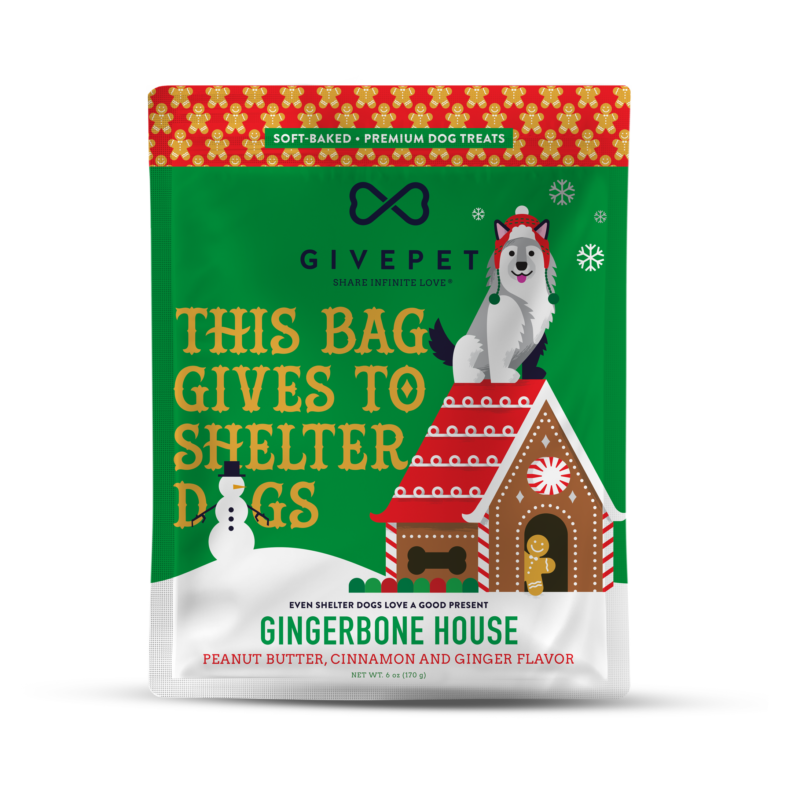 6oz bag of holiday-themed soft baked treats. Made with nutrient-rich whole foods and superfoods. Peanut Butter, Cinnamon and Ginger flavor.