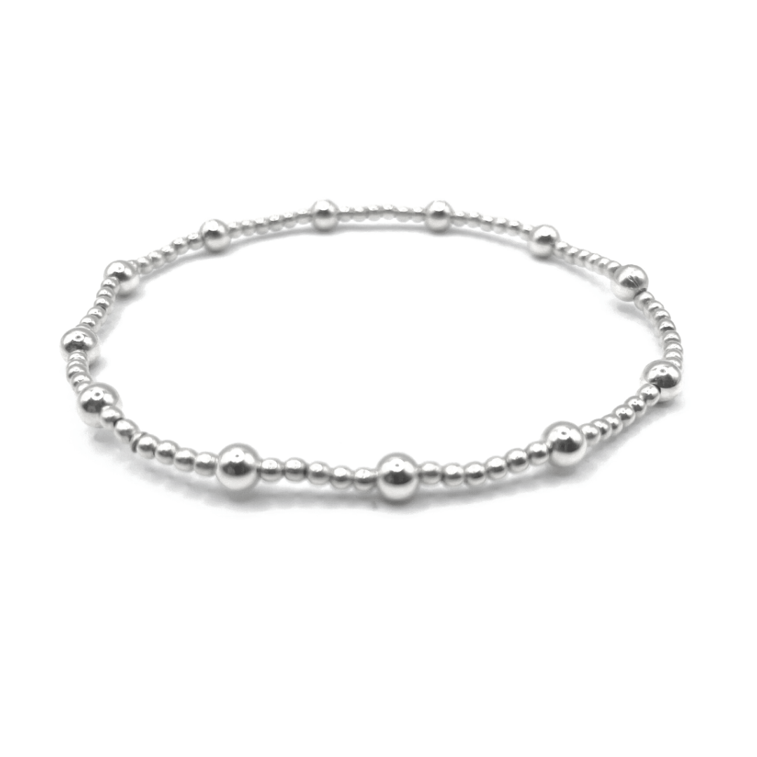 Wear on its own or stack it! These Sterling Silver 2mm beaded stretch bracelets are created with twelve 4mm gold filled beads. wear single or stack it.