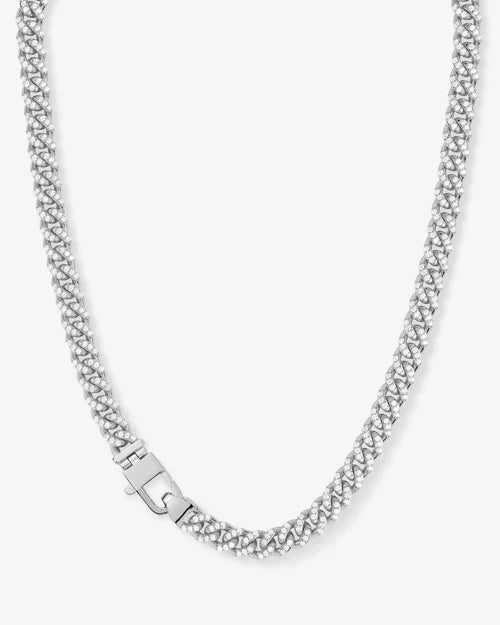 Chains + Diamonds = The Best of Both Worlds. The timeless Cuban style chain just got its glow up with pavé diamonds. The Julian Cuban Chain Necklace in 6.8mm is bold enough to be the star of the show yet versatile enough to layer. Classic, elevated, and ready for its main character moment.