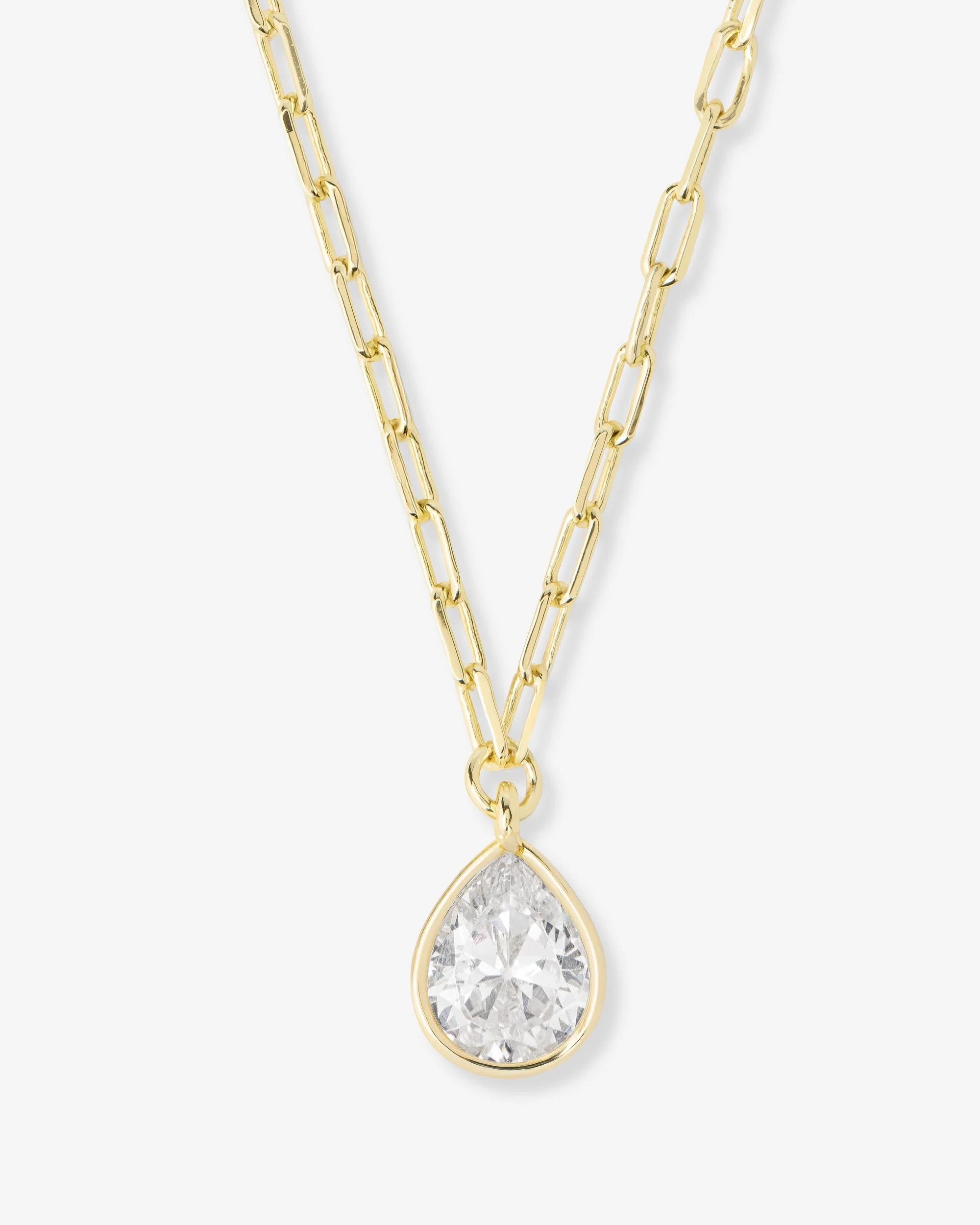 A perfect little moment, captured in a teardrop. This delicate micro Samantha chain holds a bezel-set simulated diamond that's all grace, no fuss. Minimal effort, maximum effect.