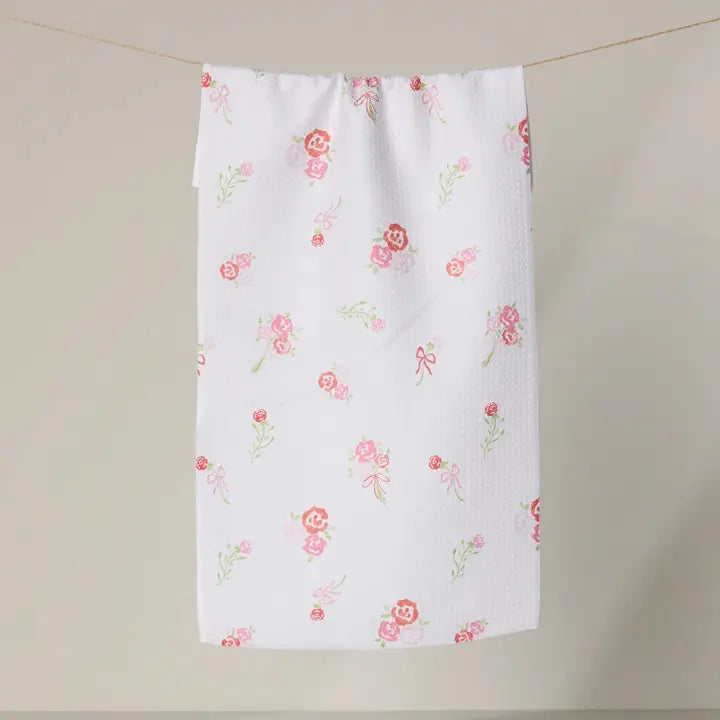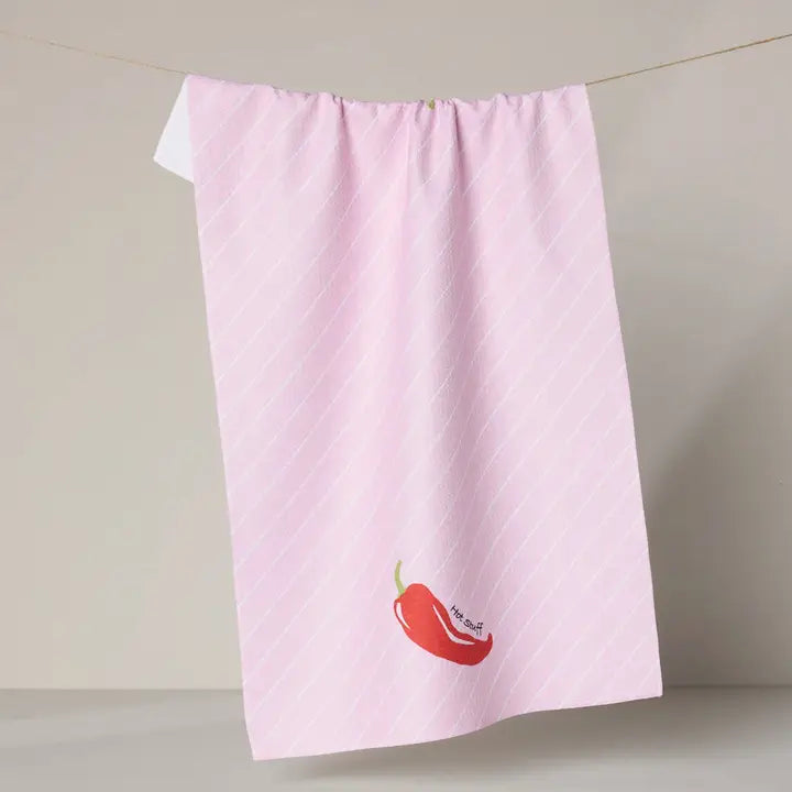 These whimsical geometric kitchen tea towels are single-sided print, waffle weave construction, SUPER absorbent, quick drying and have a hang loop for easy storage.