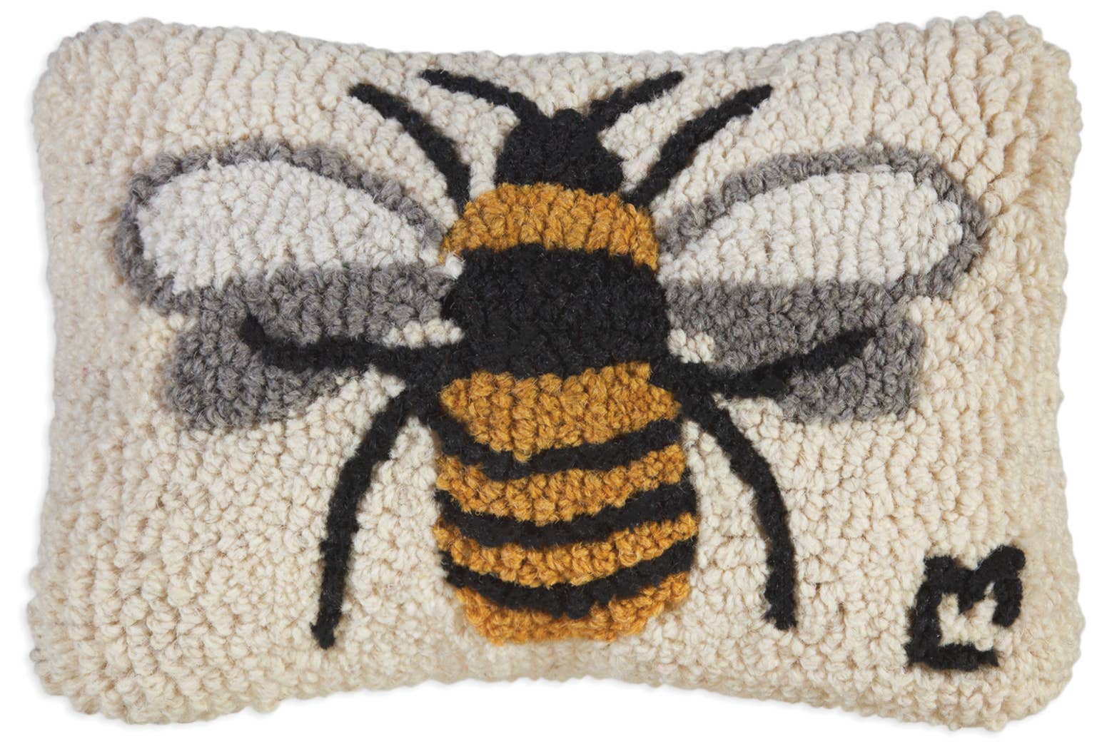 This Lone Bee hand hooked pillow is made with 100% natural wool and a zippered velveteen backing with poly-fill pillow insert. Designed in Vermont by Laura Megroz.