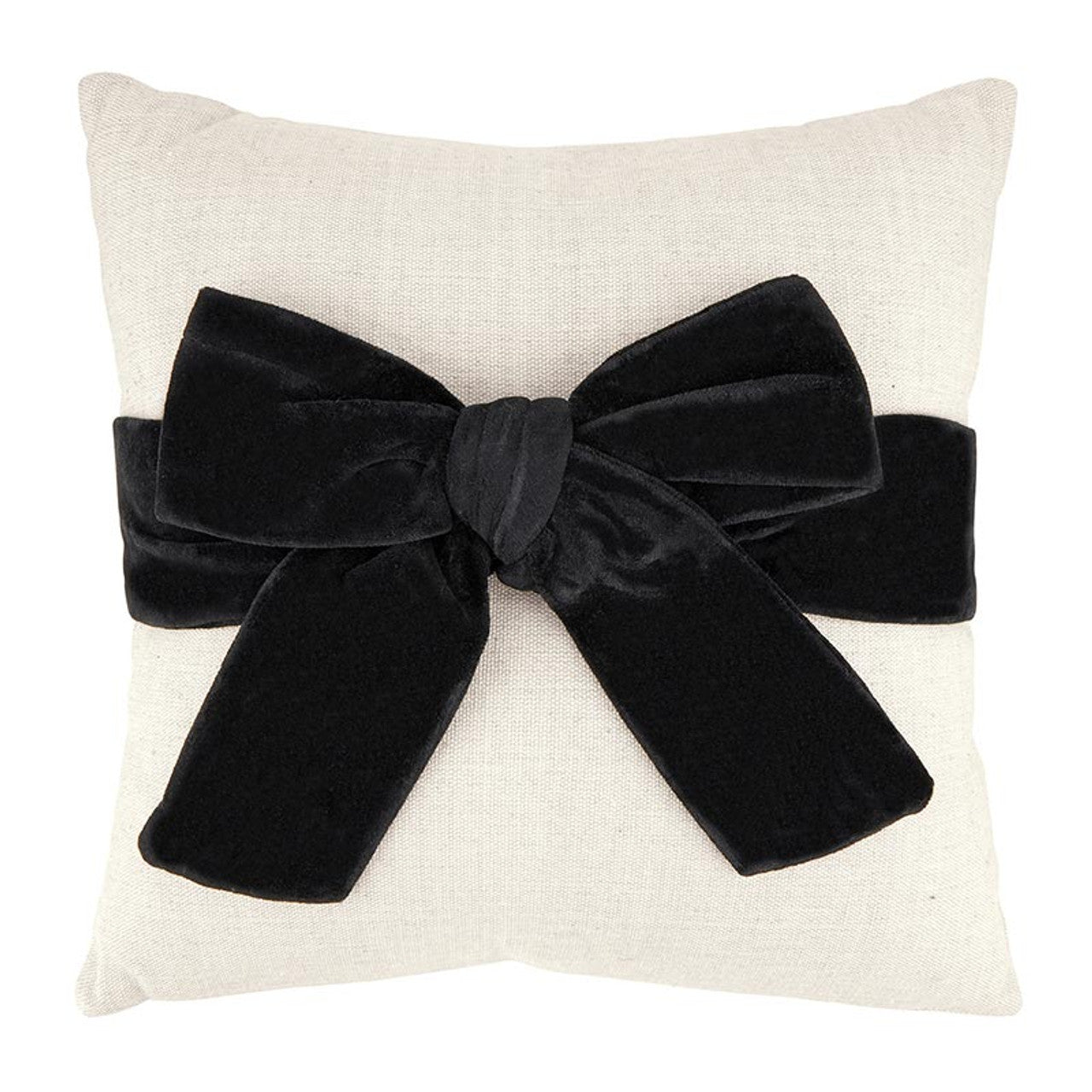This 15.5" square pillow is crafted with 100% cotton and plush velvet filling, adorned with a charming bow.